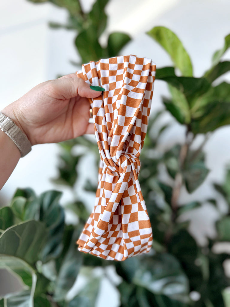 The Indie Headwrap - Wavy Cognac Checker