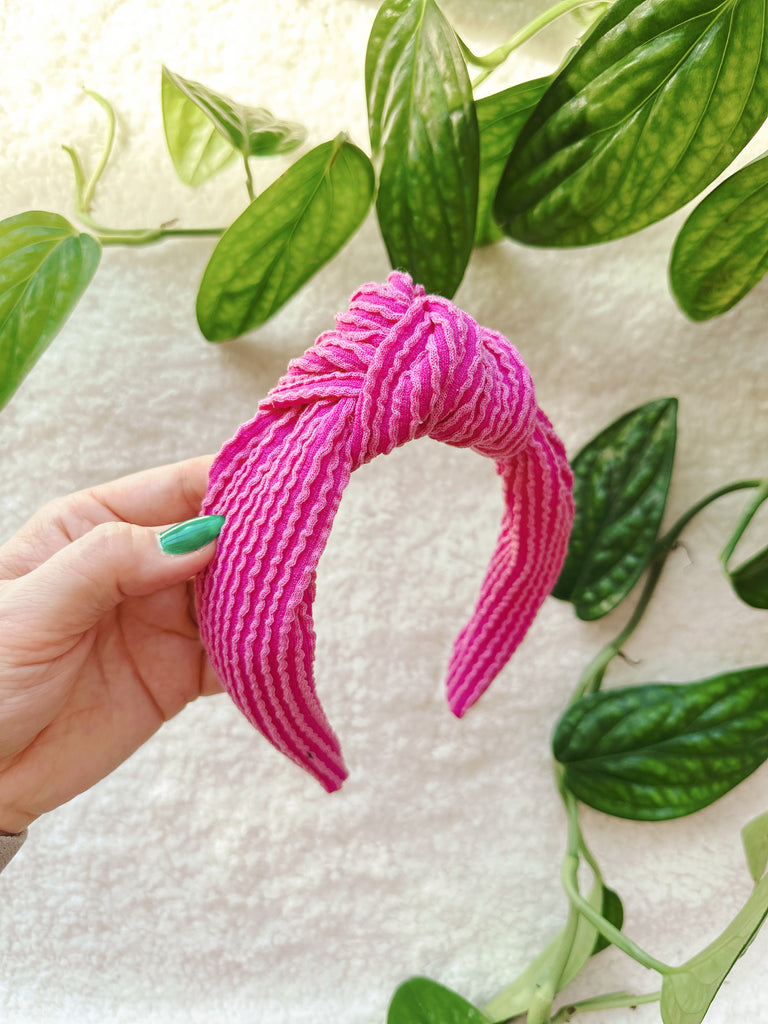 Our classic hard headbands feature a special headband insert that allows you to stretch and bend to fit your head size! No plastic. No headaches. No annoying budge behind your ears. Just a cute, comfortable classic knotted headband!
