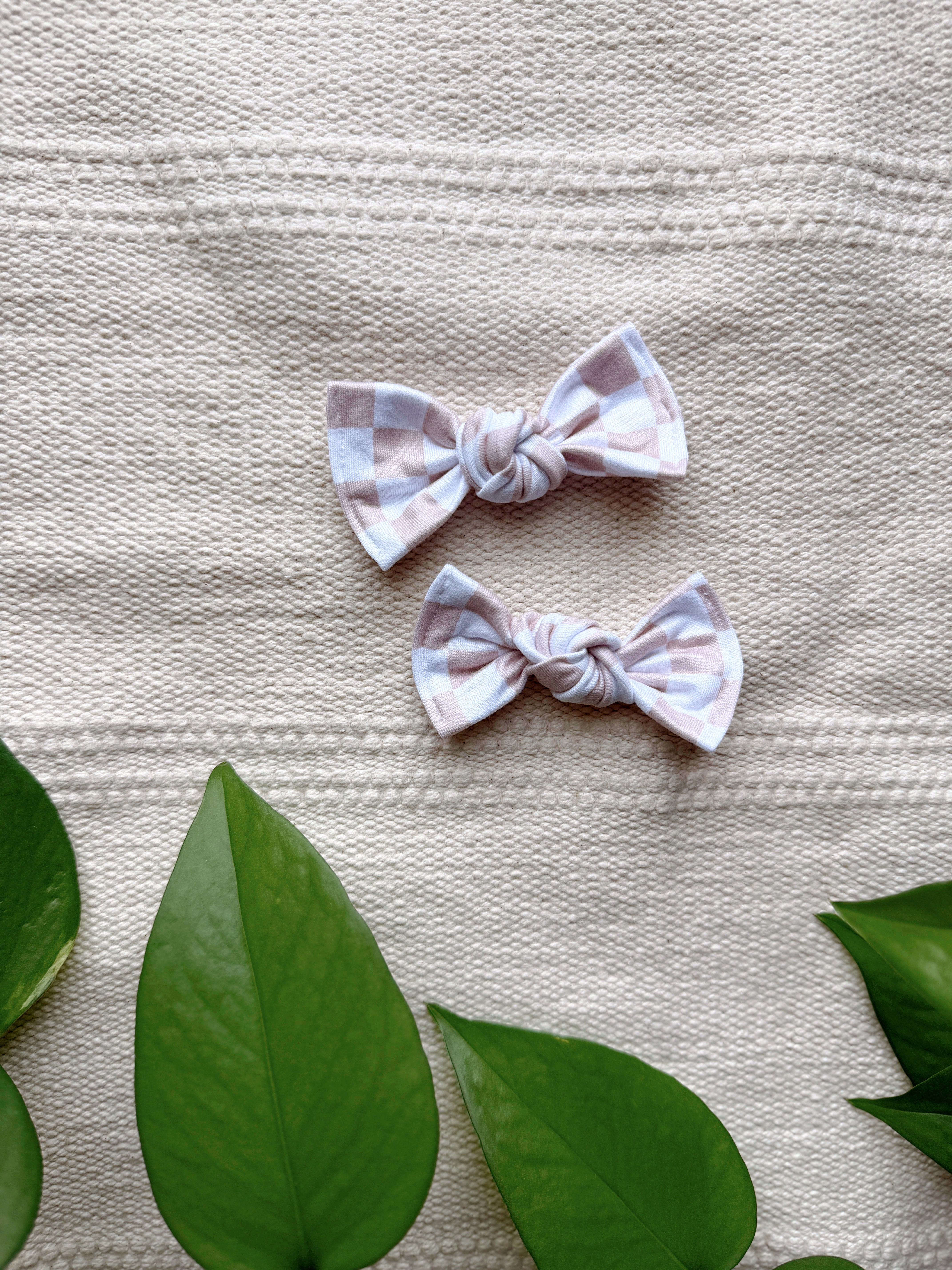 Set of two 3” sewn, hand tied bows on 2” alligator clips