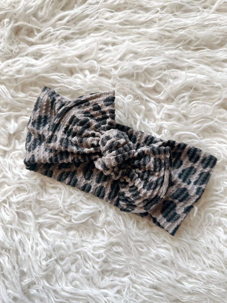 Textured Hard Headband - Wavy Ribbed Grey Leopard